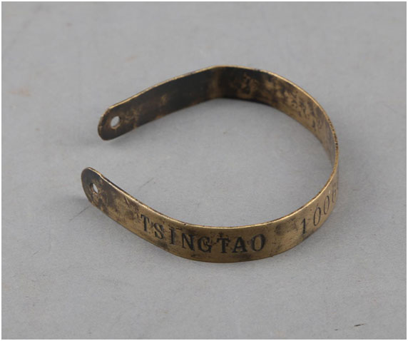 英招华工约十万人,每人编一号码,是用机器打在铜片上,卷成手镯套在华工的手腕上,待合同期满回国时才能取下。铜镯上的号码代表华工,每个人的工资、配给都根据这个号码发放。