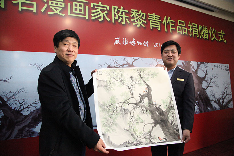 2016年,向威海市博物馆捐赠了813件作品和藏品,威海市博物馆建立黎青艺术馆。